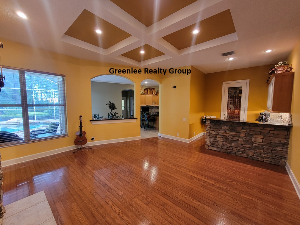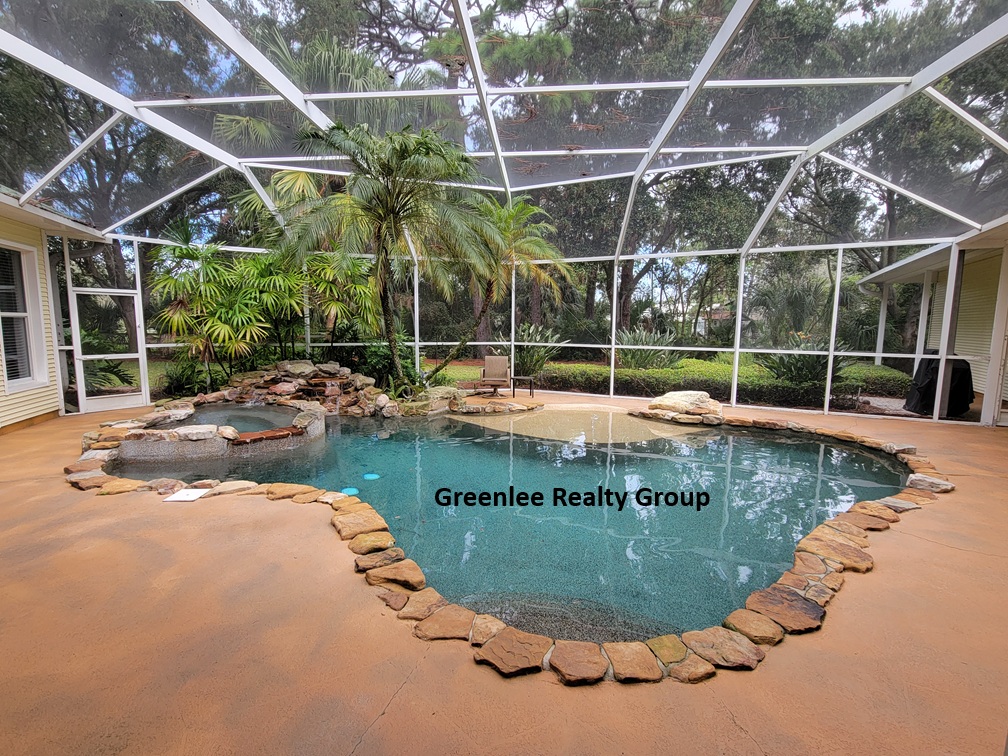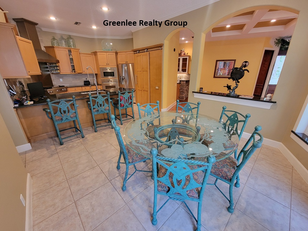 This stunning two-story, 4-bedroom, 4.5-bath pool home in highly sought-after Tarpon Springs is a true hidden gem and an absolute must-see! Tucked away behind a private gated entrance and surrounded by mature trees, the property offers total seclusion with no neighbors in sight. Inside, the spacious first floor features a 24-seat theater room perfect for movie nights, a versatile office/library with built-in shelves, a desk, and a Murphy bed, plus a luxurious owner's suite. The owner's retreat includes a cozy reading or craft nook, a large walk-in closet, and an expansive en-suite bath with dual vanities, a garden tub, and a separate shower. A double-sided propane fireplace connects two comfortable living areas, while a built-in bar with a wine cooler (note: refrigerant needed) makes entertaining a breeze. The chef’s kitchen is fully equipped with granite countertops, stainless steel appliances, a gas stove, double ovens, a hidden walk-in pantry, and a breakfast bar, all flowing into a formal dining space. A dedicated laundry room with washer, dryer, utility sink, and storage cabinets adds convenience. The main level also offers a full guest bath at the front of the home and a poolside half bath. Upstairs, you'll find three additional bedrooms, two guest bathrooms, and a bonus office space.