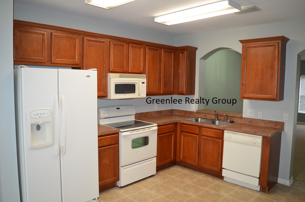 Open living/dining area with pass thru to kitchen. Beautiful cabinetry, newer appliances including a built in microwave! Large pantry and extra storage under the stairs. Half bath off kitchen too! Lots of natural light with sliding doors to the patio with pond view. Small storage closet outside as well.