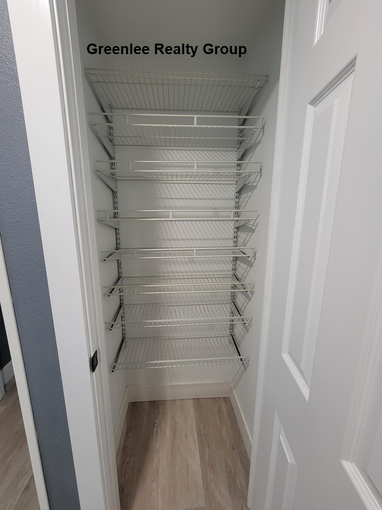 Every detail has been thoughtfully curated—from custom closet shelving in both bedrooms to matching hardware, warm wood slat accents, and upscale finishes throughout. The fully remodeled bathroom includes a new vanity and a spa-inspired walk-in shower with decorative tile, built-in ledge, and dual gold shower fixtures.