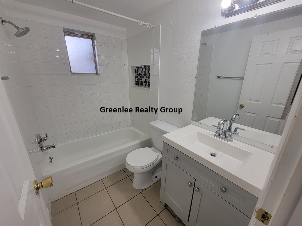 The bathroom has been tastefully updated with newer shower tile and a modern vanity, adding a fresh, clean feel to the home.