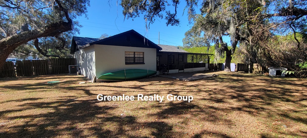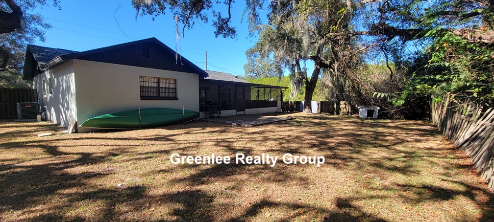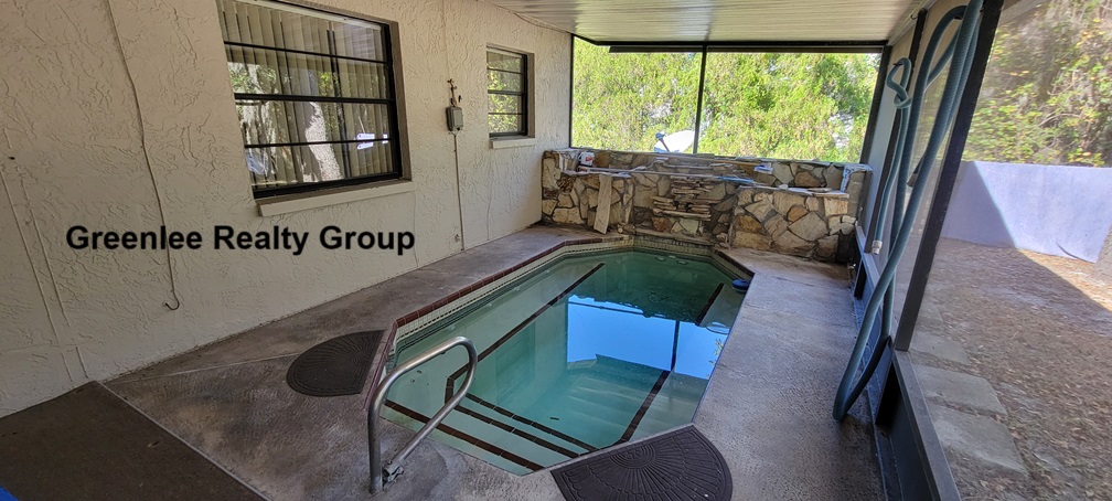 Outdoor Oasis: A large, fenced backyard with a screened-in pool, perfect for relaxing or entertaining.