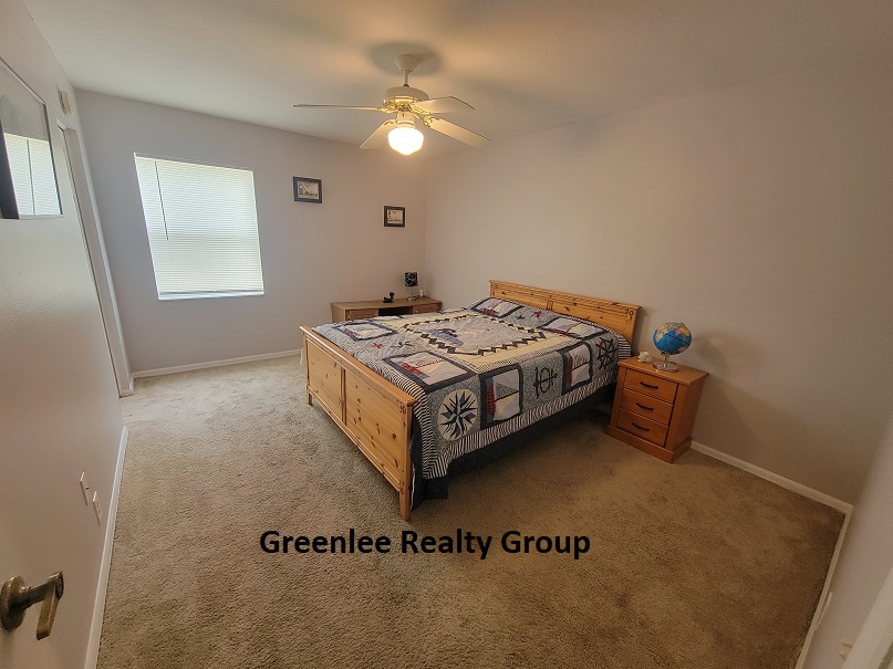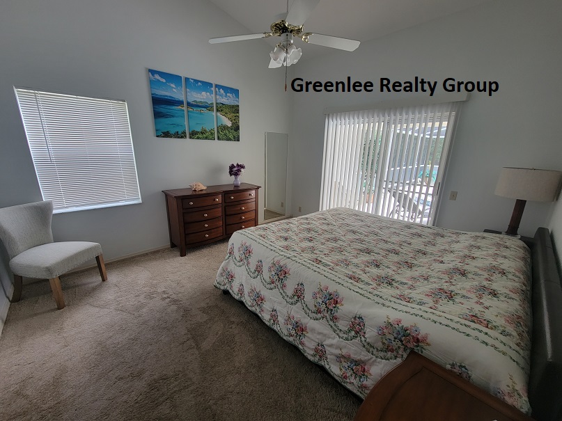 This home offers a split floor plan. When you walk inside the main bedroom is to the left. It is spacious and features a large walk in closet, a private full bath and access to the screened-in Pool. The other guest bed and bath are on the other side of the home. The guest bedroom has a large walk-in closet as well! Both bedrooms have carpet. A bonus den is off the Living room. The kitchen has a pass-through bar area to the living room, which is perfect for entertaining guests. It also features all appliances (fridge, stove, microwave and dishwasher) and a pantry. The dining area is off the kitchen. It has access to the pool and ample windows to let in natural light. Washer and Dryer for tenant’s use is in the 2-car garage.