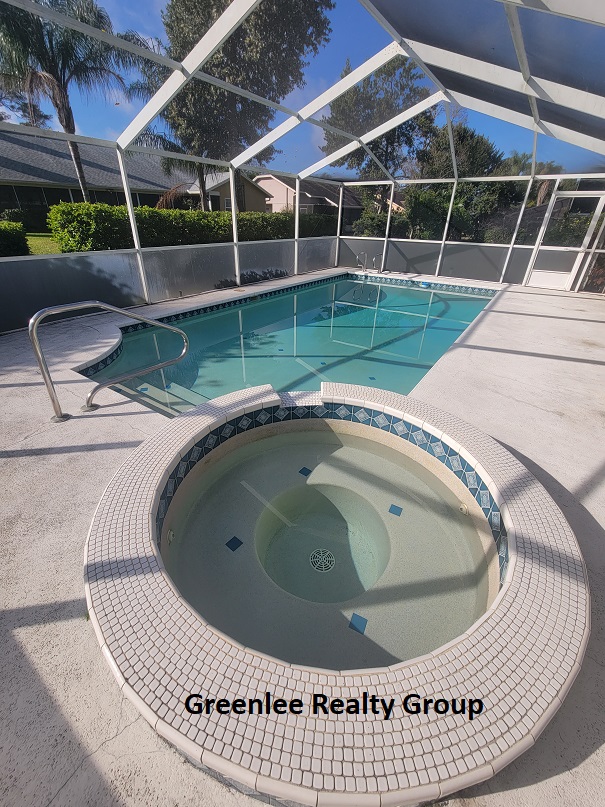 The screened-in Pool & spa (heater excluded) is enclosed and has a large porch area for outdoor cooking!